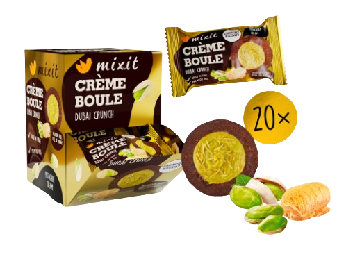 Dubajská čokoláda dobýva svet a tieto krémové gule sú ódou na jedinečné spojenie sladkých datlí, kvalitného kakaa Single Origin z Peru, delikátnych pistácií a kataifi. Každá guľa skrýva sametovo jemný krém z pistácií s chrumkavým kataifi, ktorý je zahalený v lahodnej vrstve datlí s kakaom.