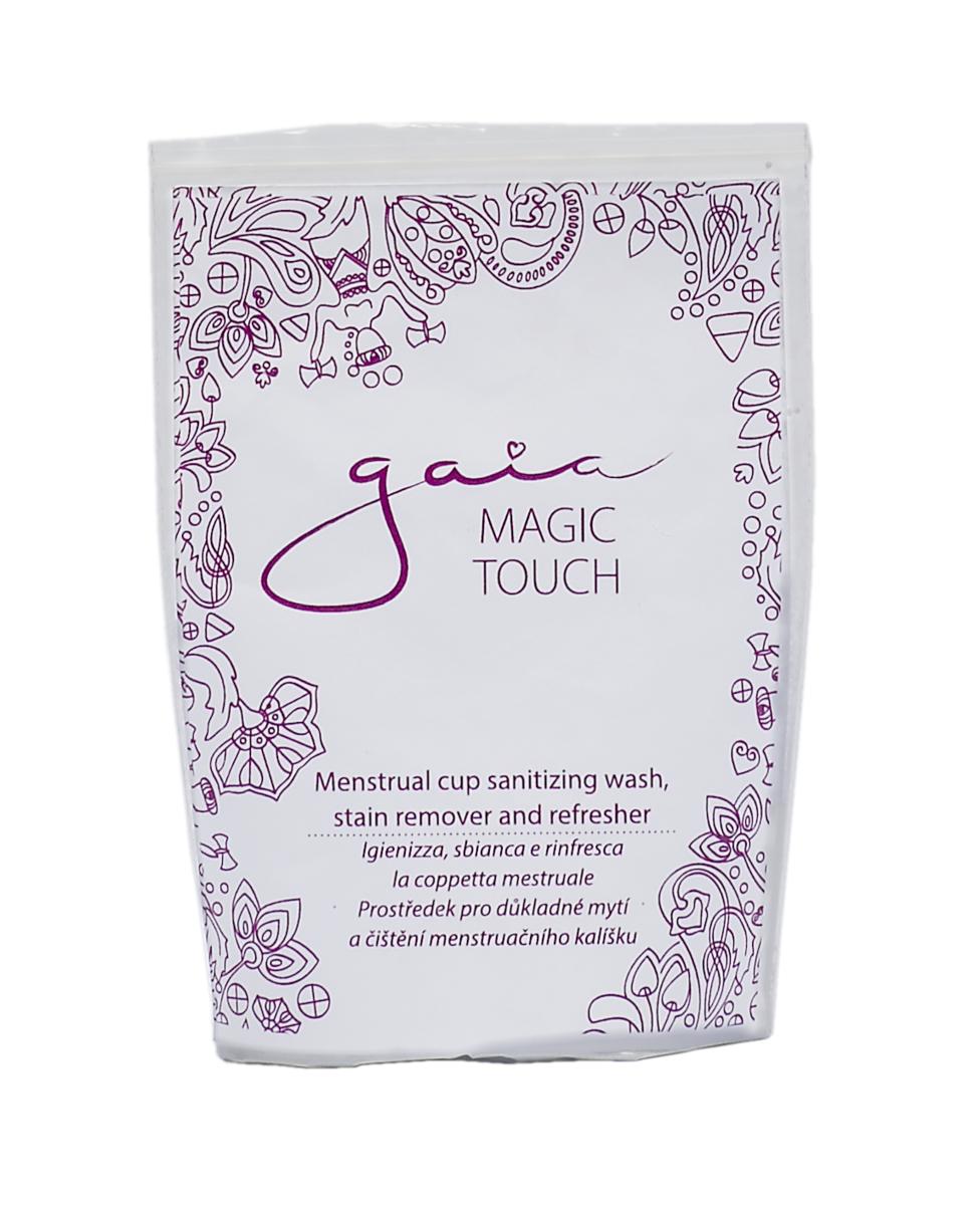 Gaia Magic Touch ľahko vyčistí váš menštruačný kalíšok. Prípravok šetrný k životnému prostrediu, pretože je rýchlo biologicky rozložiteľný. Neobsahuje chlór.