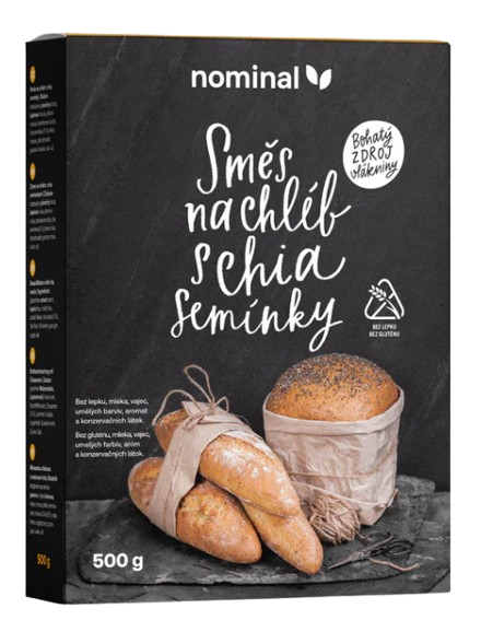 ZLOŽENIE: pšeničný škrob deproteinovaný, pšeno múka, lupinová múka, zemiakové vločky, chia semienka (5%), ľanová múka, zahusťovadlo guarová guma, cukor, soľ, chlebové korenie.