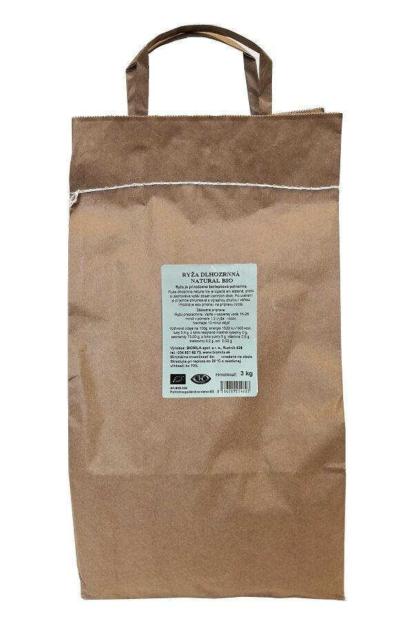 Ryža s dlhými, špicatými zrniečkami v biokvalite. Natural znamená, že pri výrobe nie je leštená alebo brúsená. Pri správnej príprave sa nelepí.